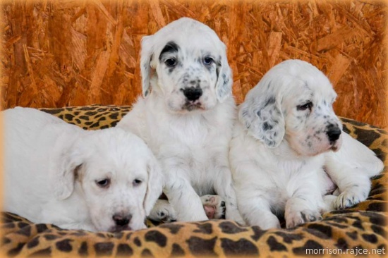 Witam wielbicieli psów rasy Setter angielski informuję,źe szukam nowy dom dla pieska w kolorze blue belton. Maluch jest po wybitnych przodkach, wolnych od dysplazji (HD-A),s kompletem zebow, kilkakrotnie docenionych na wystawach ojciec ICh C.I.E,ChCZ,SK,Lt,Ukrainy,Rosji...., Więcej informacji na temat rodziców oraz zdjec,jest dostępny na naszej stronie internetowej:www.morrisonsetr.cz